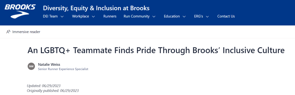 Article written for Brooks Running DEI InsideTrack (Brooks intranet)