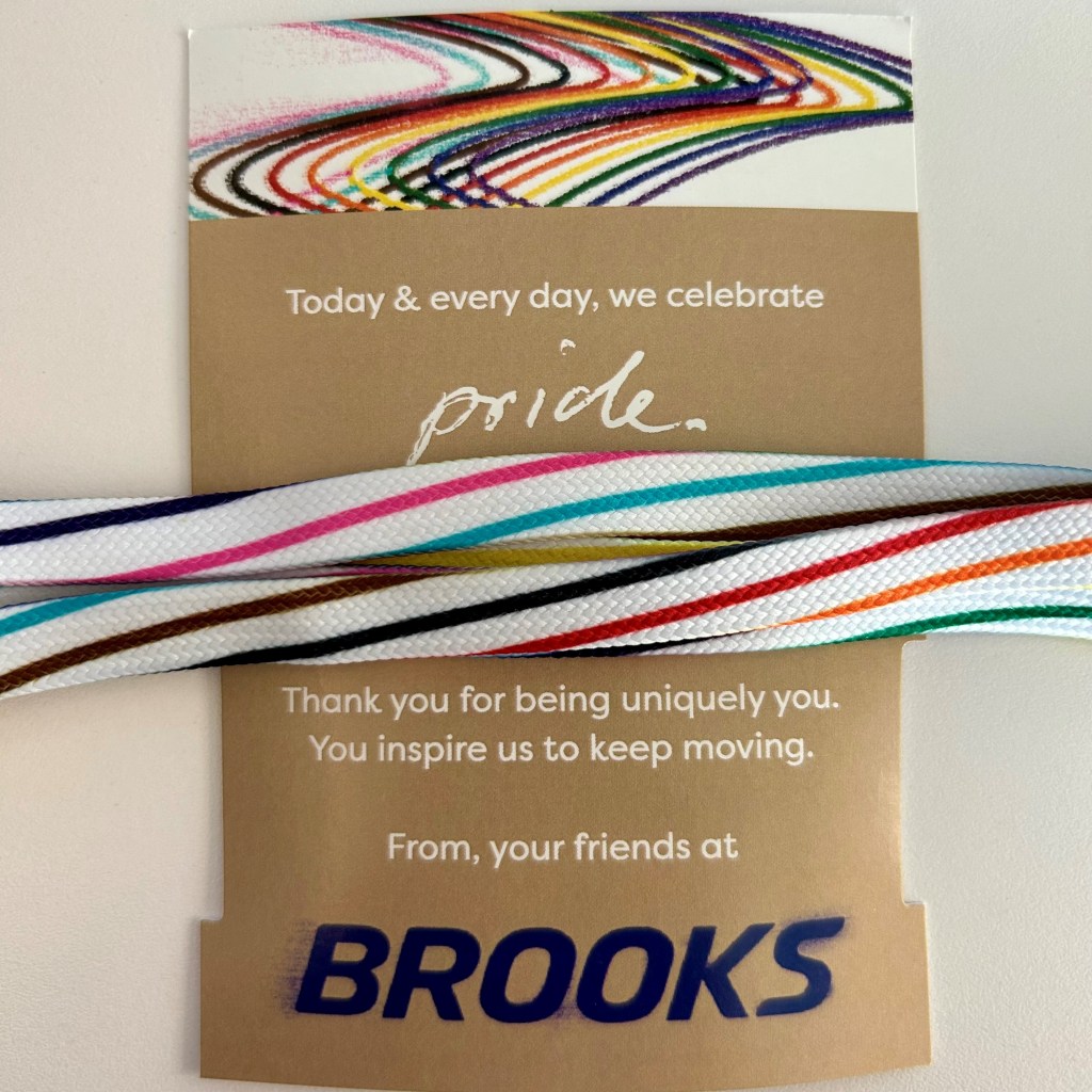 As a Co-Chair for the LGBTQ+ employee resource group (ERG) at Brooks and a member of the LGBTQ+ community, I volunteered my time and talent to the Brooks DEI team to write the copy that was featured on cards given out with rainbow shoelaces attached at both the Indy Pride Parade on Saturday, June 8, 2024 and the Seattle Pride Parade on Sunday, June 30, 2024. In total, 400 cards were handed out randomly throughout the crowds present.
